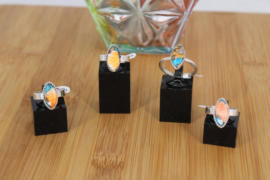 Spiny Oyster Turquoise with Copper Sterling Silver Ring